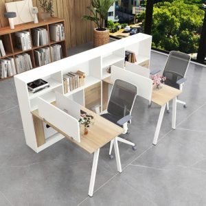 Cụm Bàn Làm Việc Đôi Văn Phòng Chuyên Nghiệp Có Tủ Kệ Đa Năng – BC77
