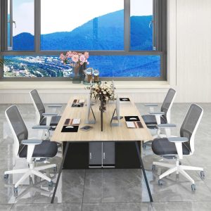 Bàn họp chân sắt Aine 2m4 trắng đen