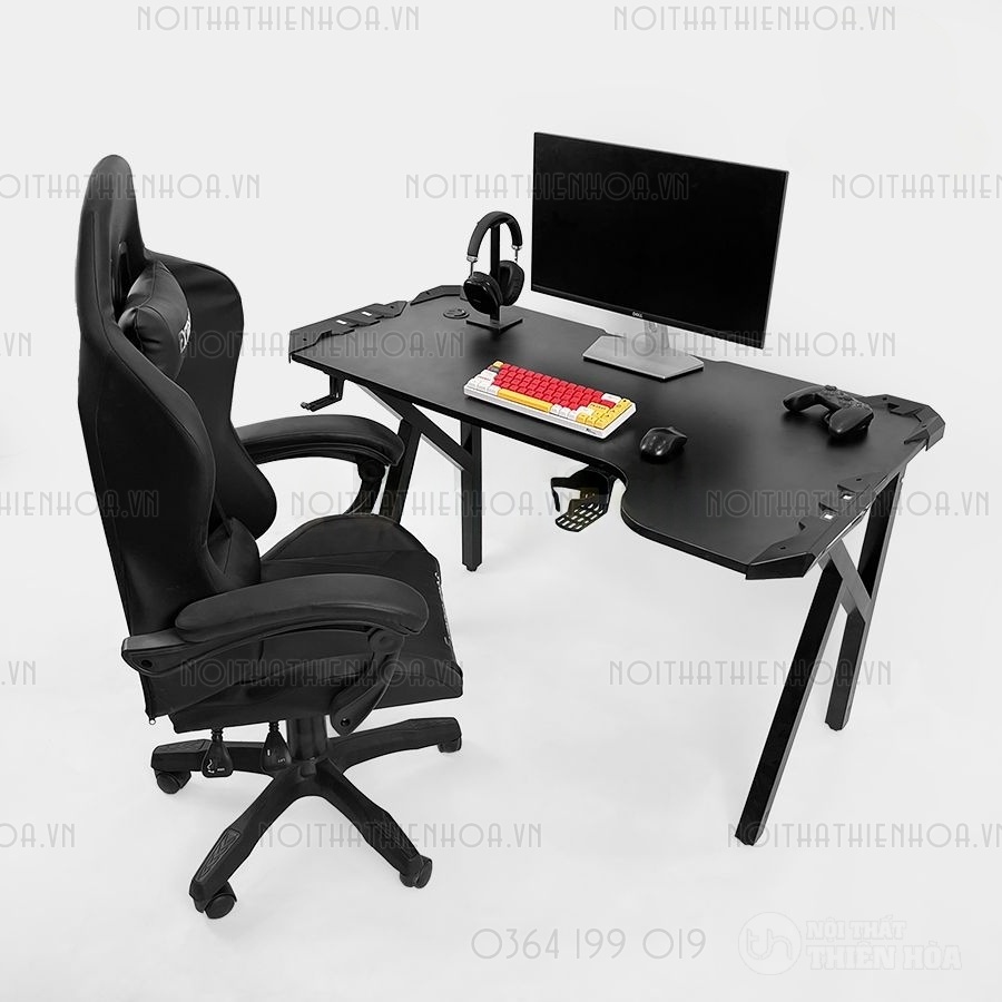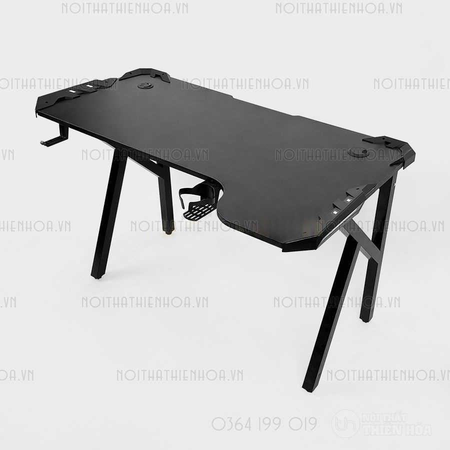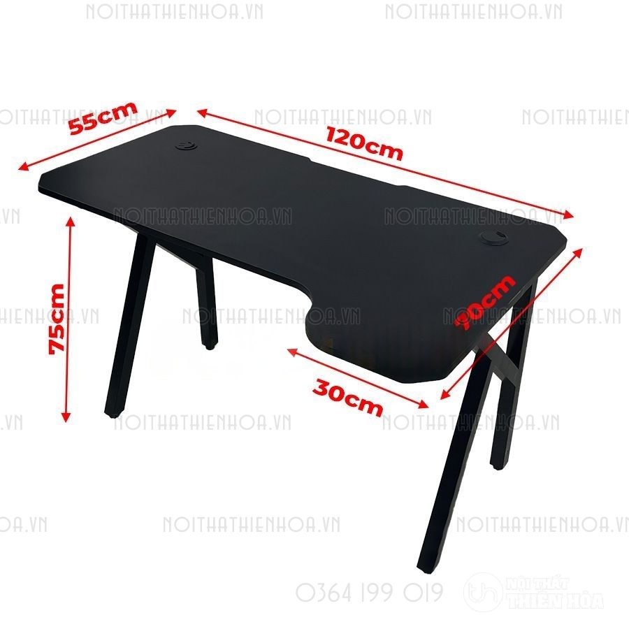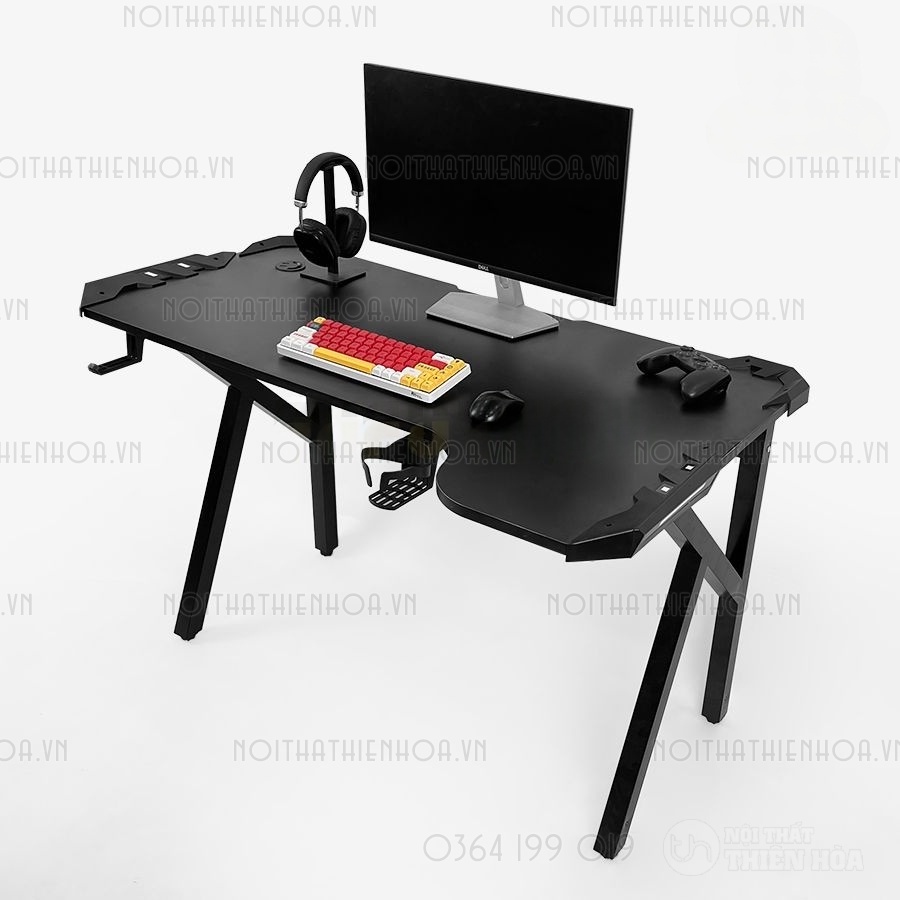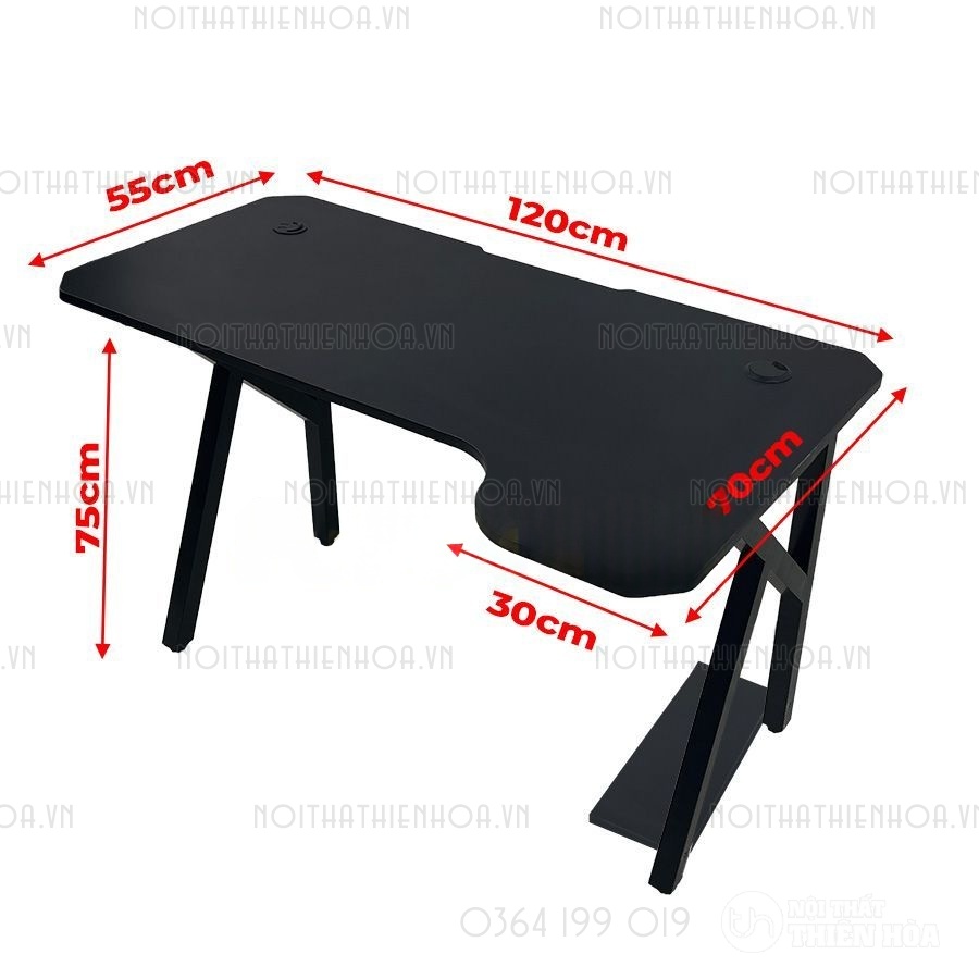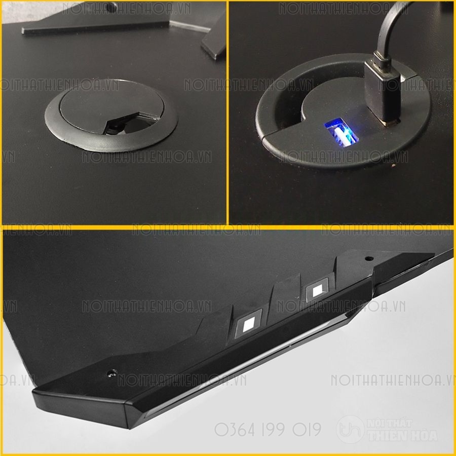 – Phần khung sắt chân bàn có độ dày 1.2 ly sơn tĩnh điện, mặt bàn có các lỗ đi dây, cổng USB hình tròn tiện lợi, đa năng giúp tối ưu hoá không gian chơi game.