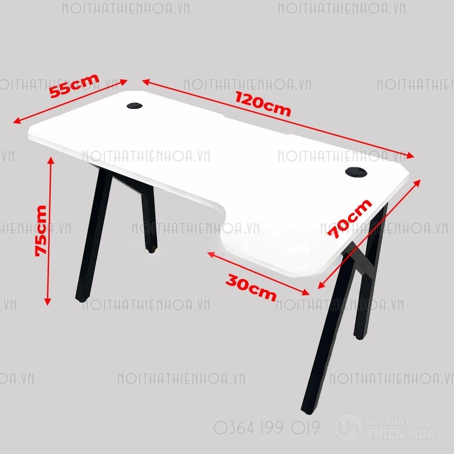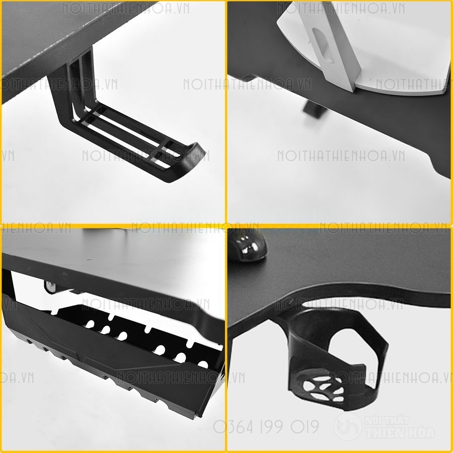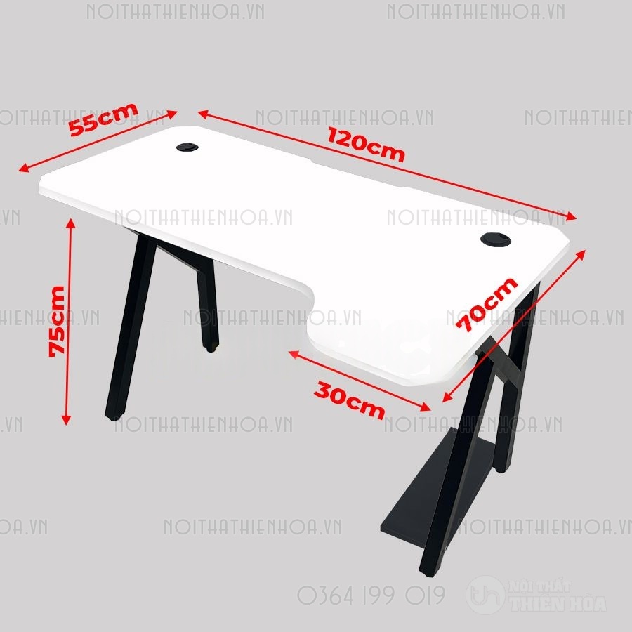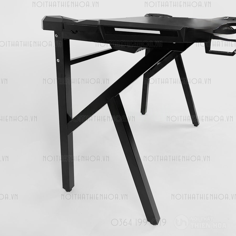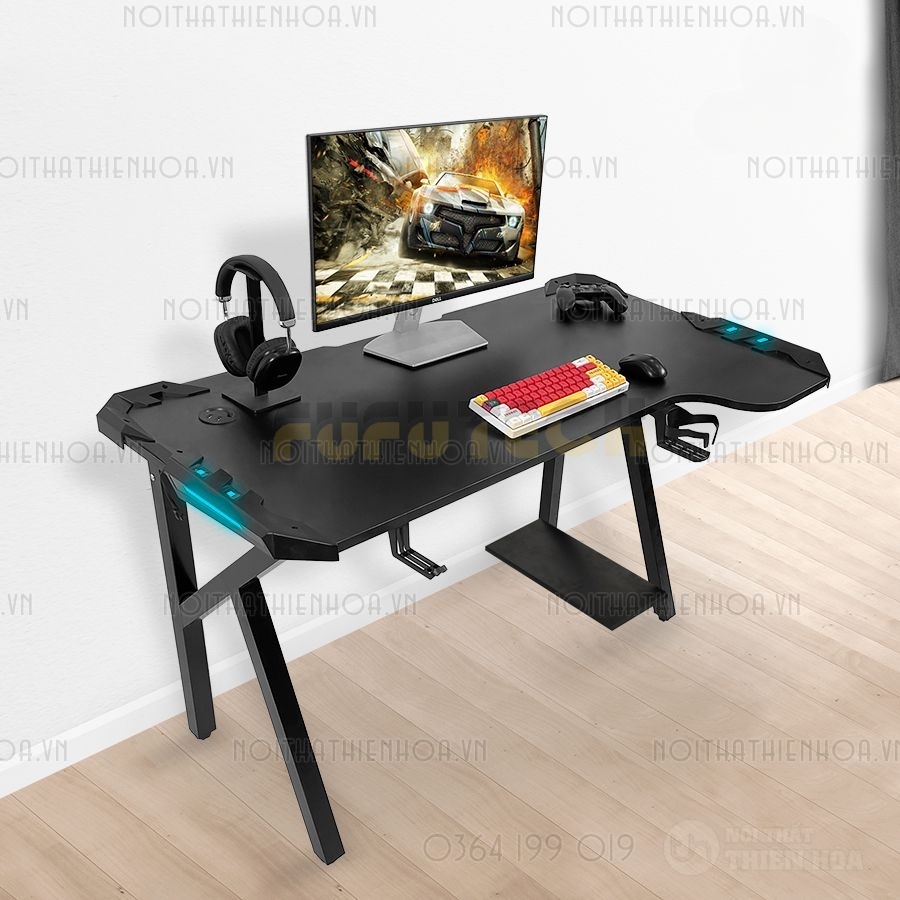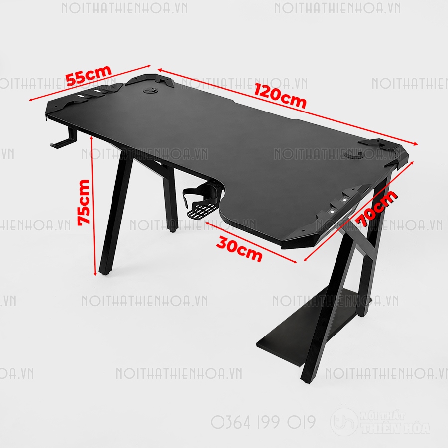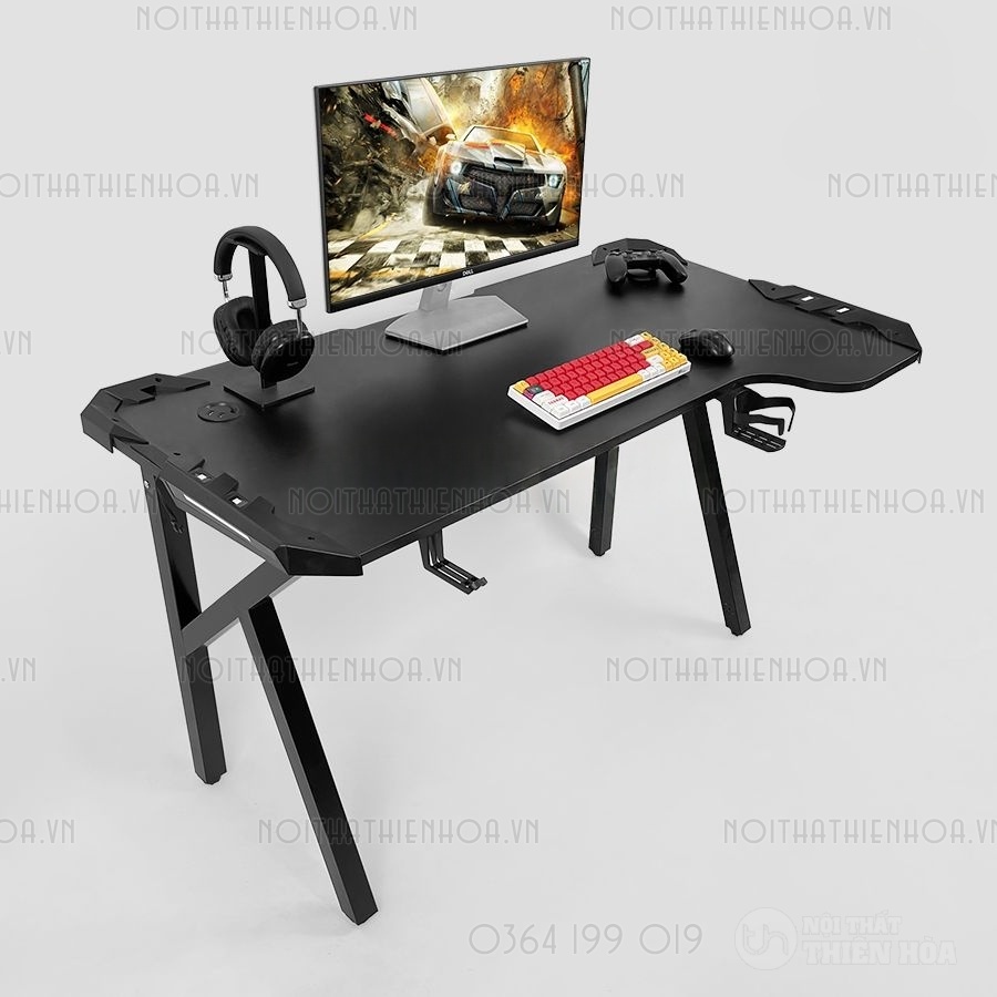 – Phần khung sắt chân bàn có độ dày 1.2 ly sơn tĩnh điện, mặt bàn có các lỗ đi dây, cổng USB hình tròn tiện lợi, đa năng giúp tối ưu hoá không gian chơi game.