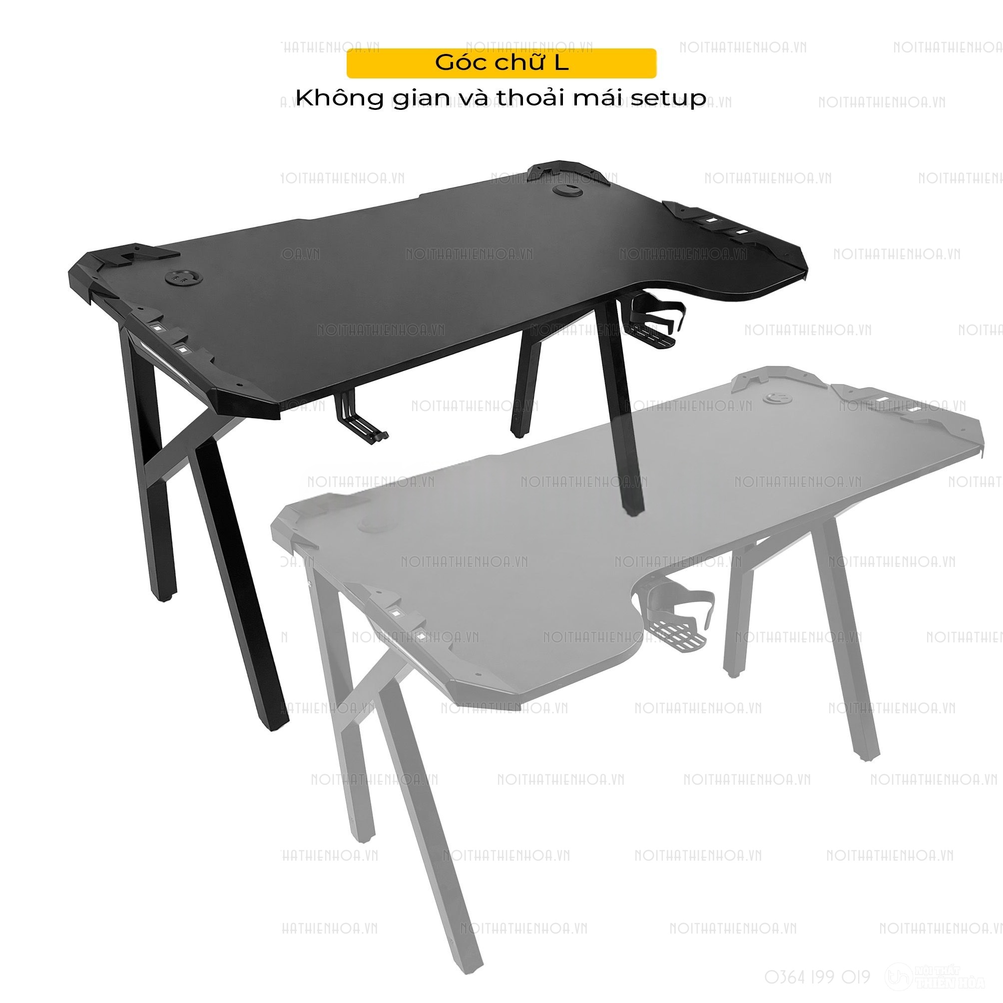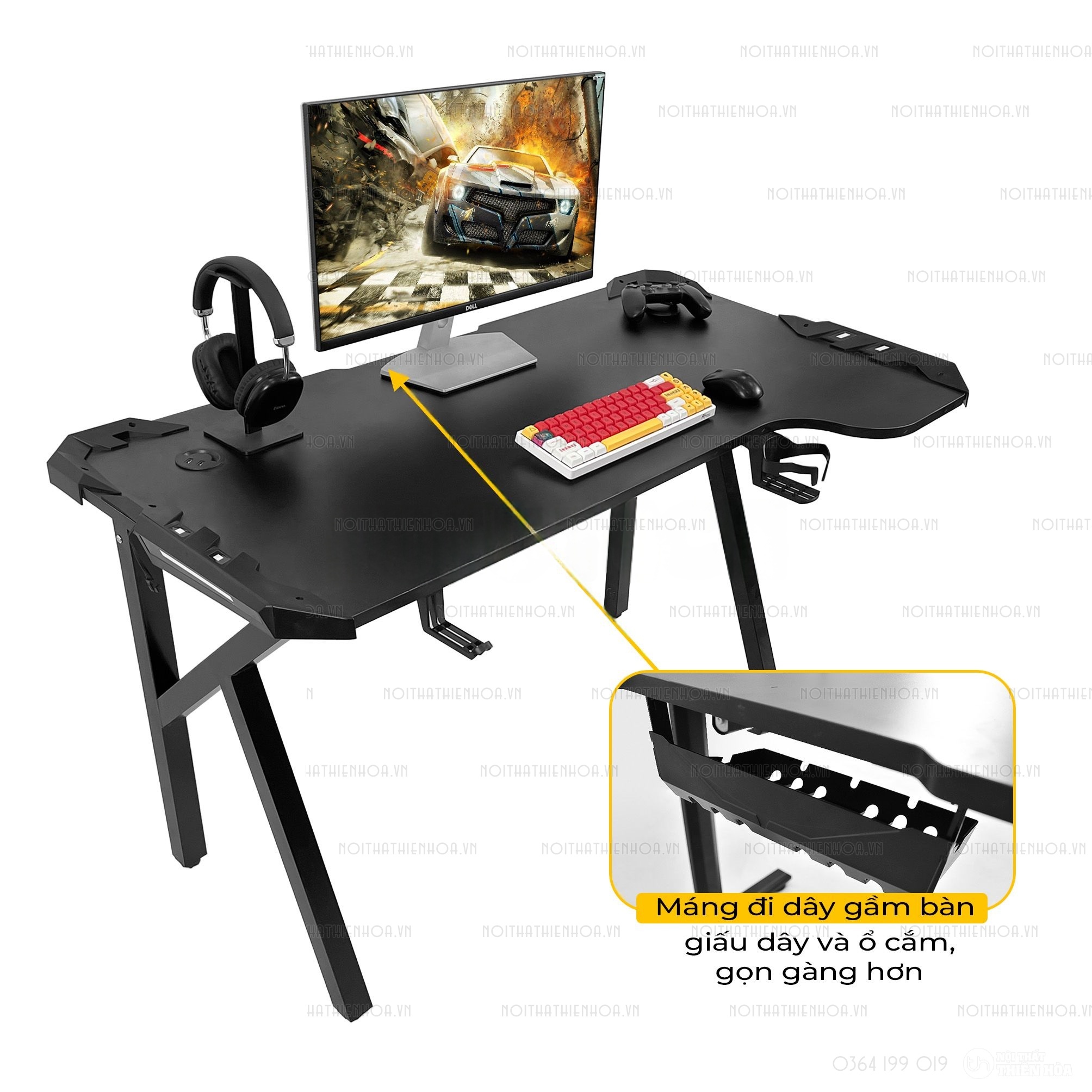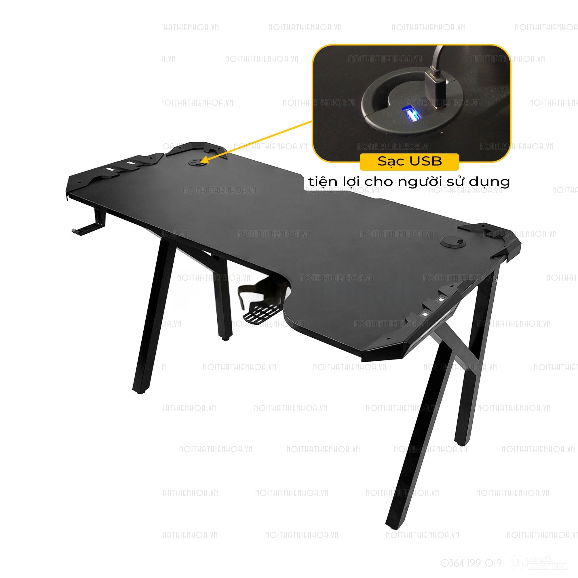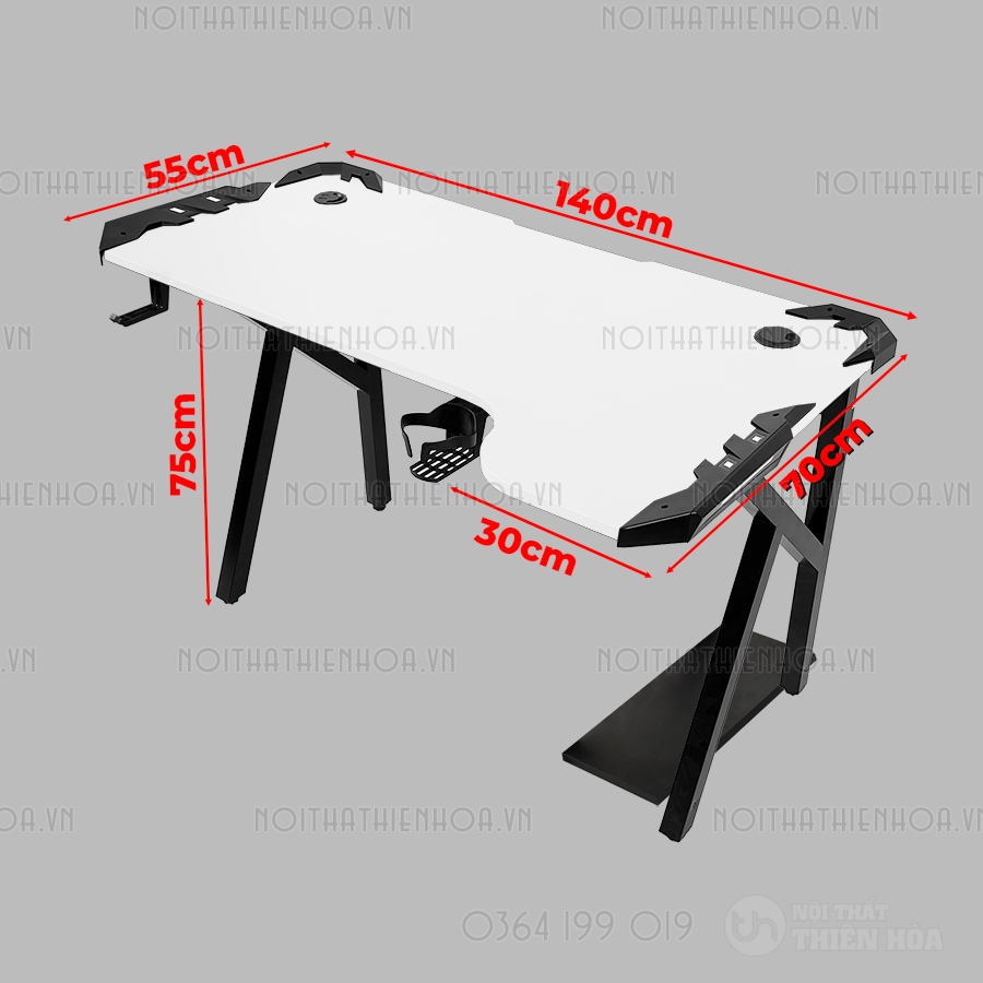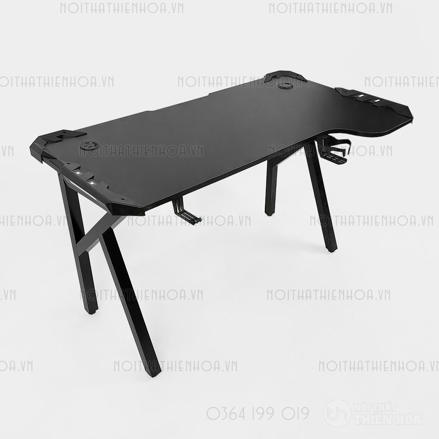 – Phần khung sắt chân bàn có độ dày 1.2 ly sơn tĩnh điện, mặt bàn có các lỗ đi dây, cổng USB hình tròn tiện lợi, đa năng giúp tối ưu hoá không gian chơi game.