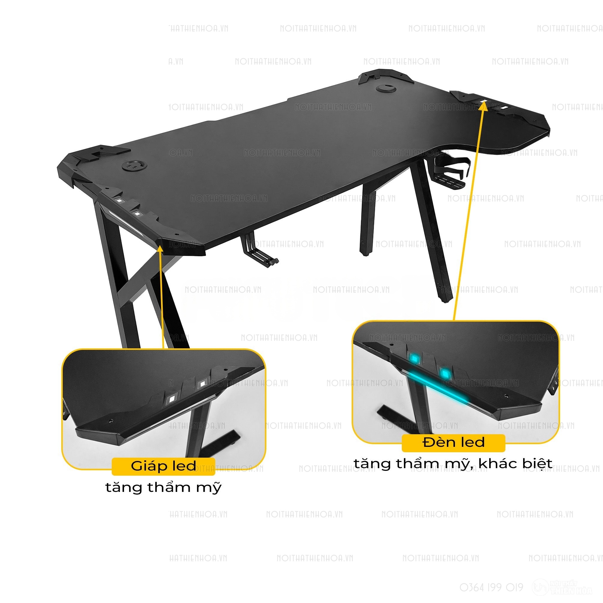 • Phụ kiện đi kèm: Thiết bị sạc USB, Bộ giáp LED + Remote, 1 Giá treo tai nghe, 1 Khay đựng cốc gắn bàn, 1 Khoang đi dây, 1 Nắp đậy lỗ đi dây.(giá mặc định chưa phụ kiện)