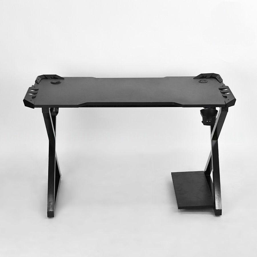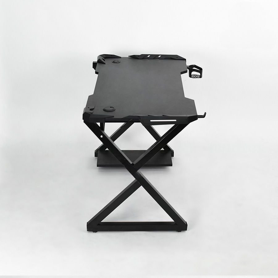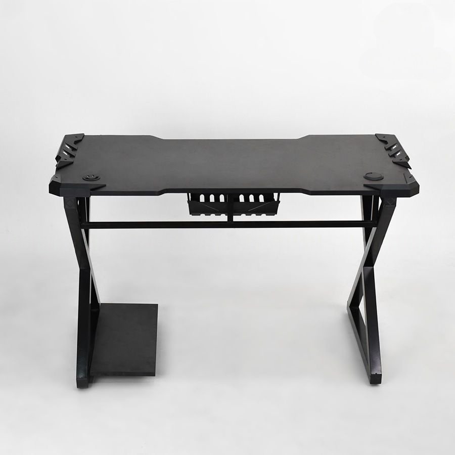 Khung sắt chân bàn Gaming X-Razer Chân đen Mặt đen có hình chữ X cá tính, độc đáo tạo điểm nhấn cho mọi không gian giải trí, đồng thời vẫn đảm bảo sự ổn định và vững chắc cho bàn trên bề mặt sàn. Mặt bàn được bo góc tỉ mỉ, cạnh khuyết mô phỏng tay cầm playstation tăng tính thẩm mỹ và chuyên nghiệp. Đặc biệt, cạnh bàn còn được ốp LED đổi màu theo sở thích người dùng, kèm remote điều khiển từ xa.