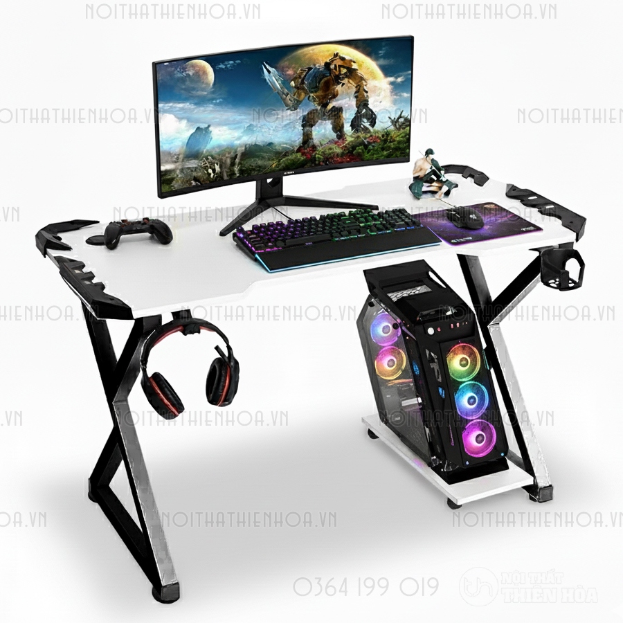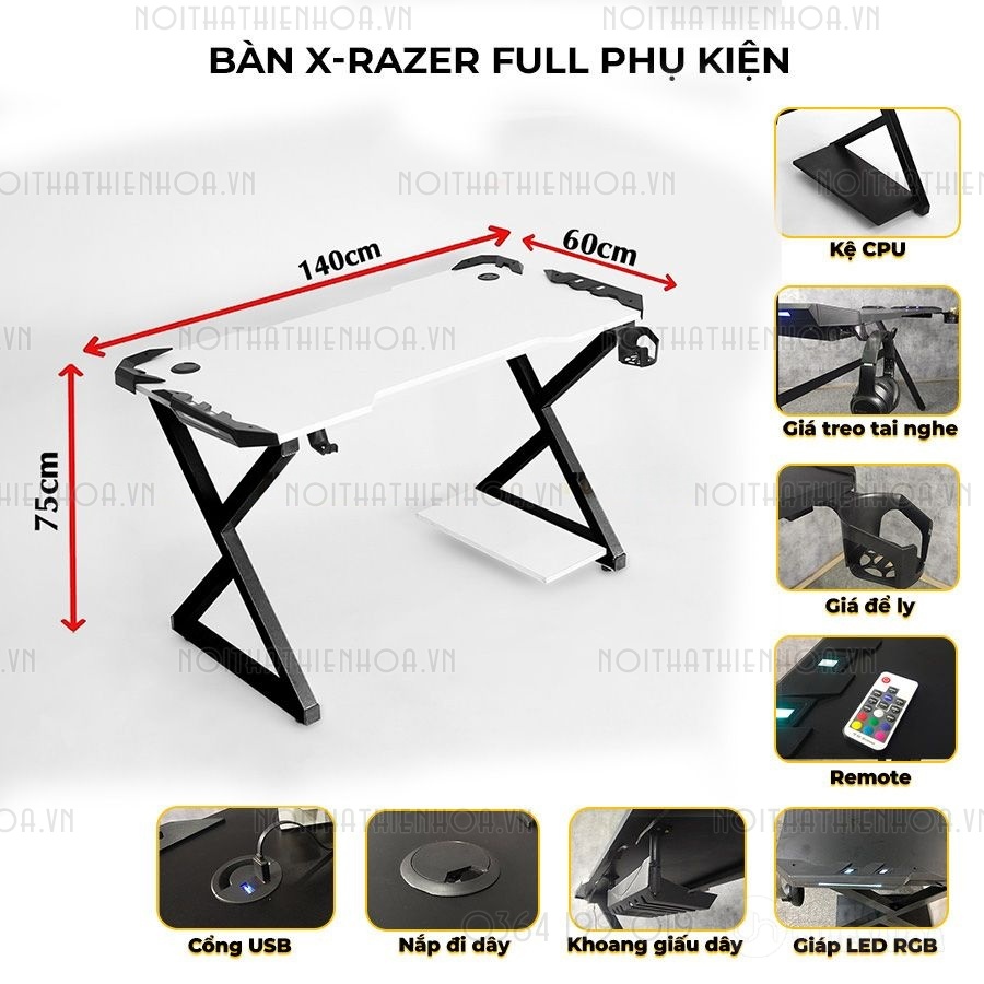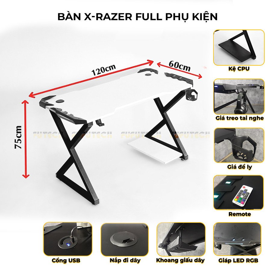 Bàn Gaming X-Razer Full Trắng - Kiểu dáng chân X cá tính, thời thượng