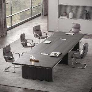 • Mặt bàn màu nâu vân gỗ hiện đại phối đen, mang lại sự sang trọng cho văn phòng.