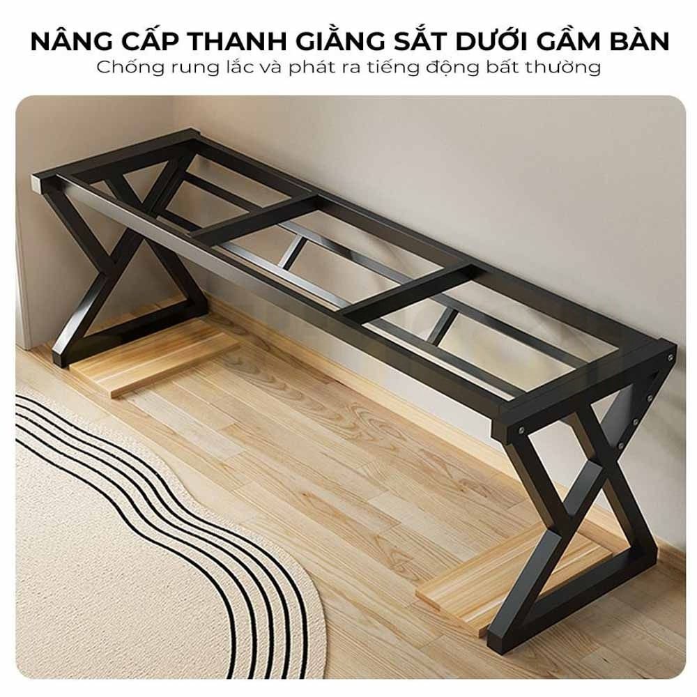 Khung thép sơn tĩnh điện: Khung bàn được làm từ khung sắt 4x4cm, dày 1.2 ly được sơn tĩnh điện chống gỉ sét, đảm bảo độ bền cao và khả năng chịu lực tốt. Đặc biệt, với thiết kế thông minh, khung bàn được nâng cấp bằng thanh giằng sắt dưới gầm bàn chống rung lắc hiệu quả, không phát ra tiếng động hay rung lắc trong quá trình sử dụng.