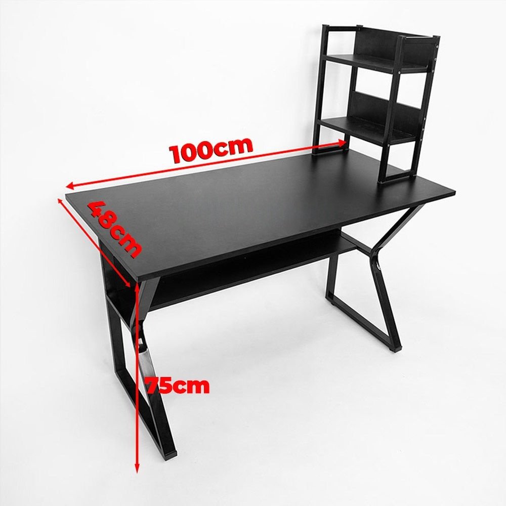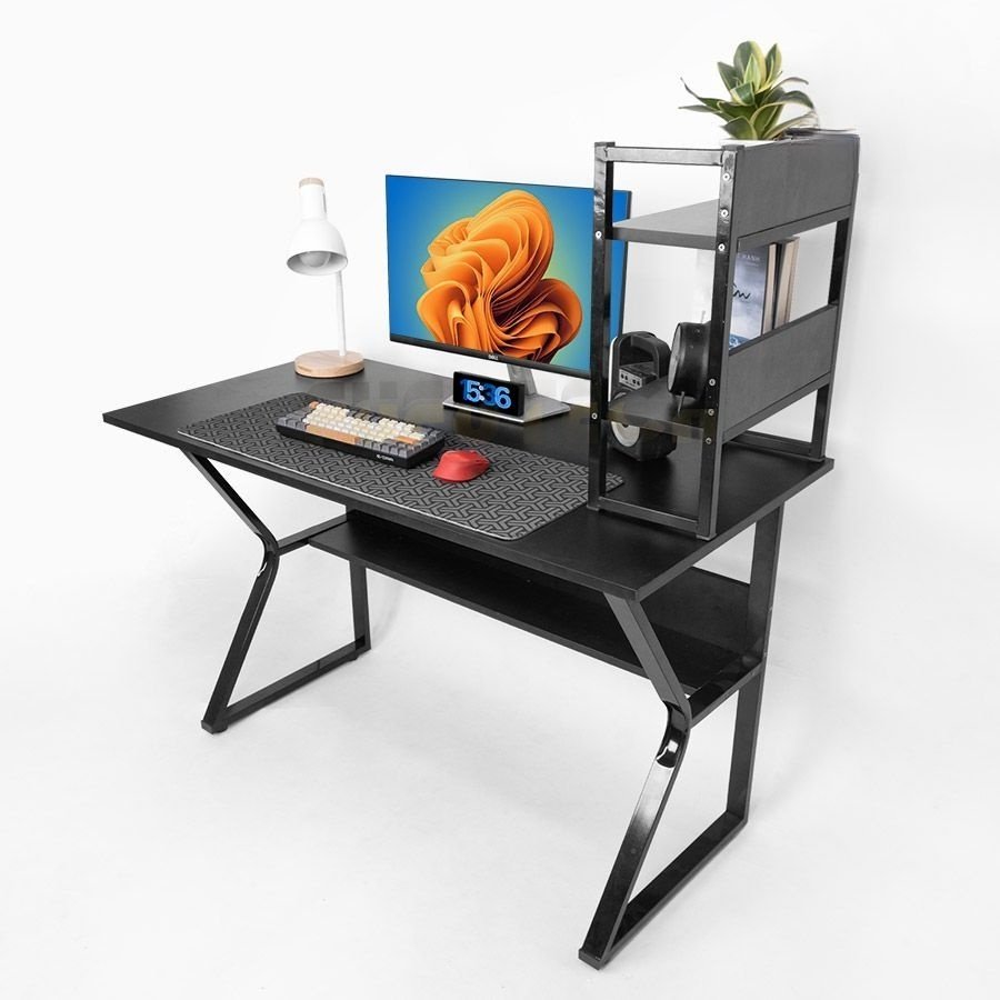 Thiết kế kệ được tích hợp ở phía dưới mặt bàn giúp mở rộng không gian cho bạn lưu trữ mọi vật dụng và tài liệu. Kệ sách 2 tầng được gia cố ở bên phải cạnh bàn, thuận tiện để trưng bày tất cả các vật dụng decor như đồng hồ điện tử, chậu cây mini, mô hình nhân vật anime,… và những cuốn sách yêu thích. Thiết kế bàn làm việc tích hợp kệ sách giúp không gian làm việc trở nên tinh tế, sang trọng và có trật tự hơn, từ đó người dùng có thể dễ dàng tìm kiếm bất cứ vật dụng nào theo mong muốn. Nếu là một người đam mê sách và nghệ thuật decor, chiếc bàn độc đáo này chắc chắn sẽ không làm bạn thất vọng khi trở thành mảnh ghép mới trong căn phòng.