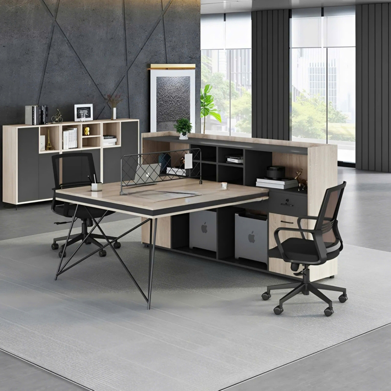 Cụm Bàn Làm Việc Đôi Văn Phòng Có Kệ Lưu Trữ Đa Năng