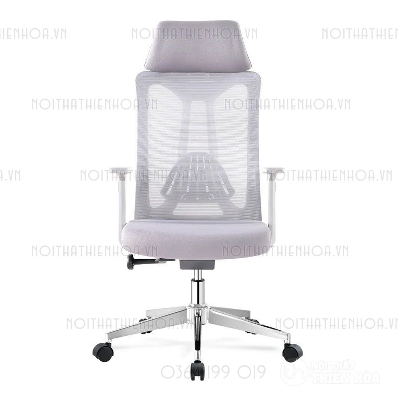 Ghế công thái học có tựa đầu giá rẻ là dòng ghế làm việc dành cho người ngồi lâu, nó được trang bị thêm một miếng nhựa tựa lưng, giúp nâng đỡ phần cột sống của người ngồi. Phần khung ghế được làm bằng loại nhựa cao cấp có độ cứng chắc và chịu lực tốt. Phía trên ghế có tựa đầu đóng vai trò như chiếc gối khi ngả nằm, còn lưng ghế được làm bằng lưới tạo cảm giác thoải mái và thoáng mát.