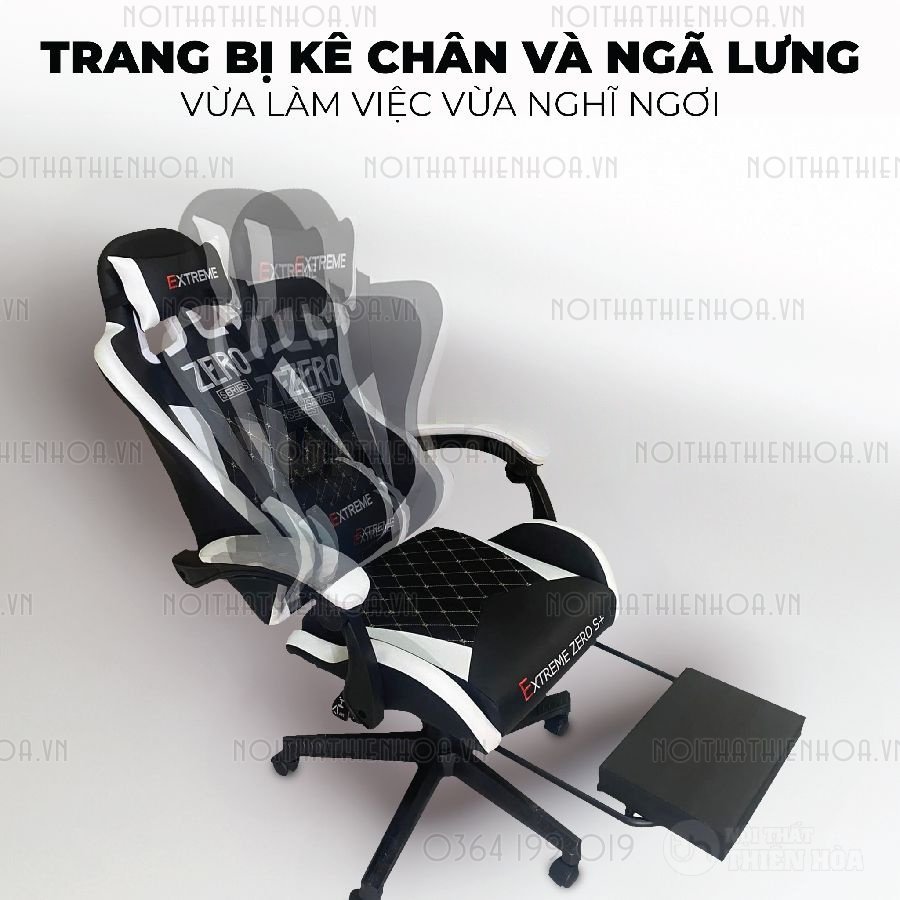 Kê chân tiện lợi và ngả lưng thoải mái: Góc ngả lưng có thể điều chỉnh lên đến 155 độ, giúp bạn thư giãn tối đa sau những giờ làm việc căng thẳng. Đặc biệt, thiết kế của ghế Gaming Extreme Zero S+ có thêm kê chân thoải mái giúp bạn thư giãn đôi chân sau những trận game dài, chắc chắn, bạn có thể sử dụng khi làm việc và nghỉ ngơi.