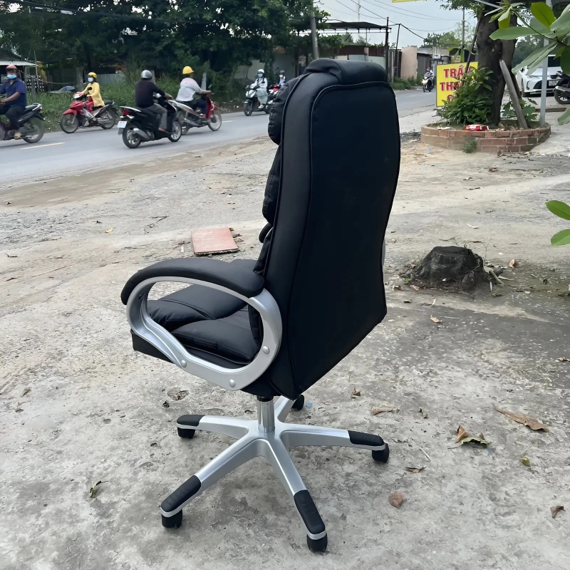 Đệm tựa mút bọc da cao cấp, bát cần hơi điều chỉnh độ cao thấp, có thể nâng lên hạ xuống tuỳ mục đích sử dụng, và độ ngã của ghế