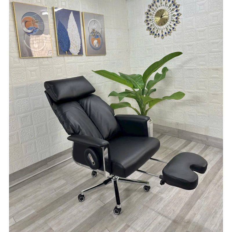 Ghế giám đốc đệm mút có gác chân dạng chữ U là mẫu ghế lý tưởng cho những ai tìm kiếm sự êm ái và tiện nghi trong công việc. Thiết kế hiện đại với phần đệm mút dày dặn, ôm sát cơ thể, mang lại cảm giác thoải mái suốt ngày dài. Điểm nhấn nổi bật là phần gác chân dạng chữ U chắc chắn, dễ dàng kéo ra – xếp gọn, giúp thư giãn tối đa khi nghỉ ngơi. Ghế có khả năng ngả lưng linh hoạt, điều chỉnh độ cao tiện lợi, kết hợp chân xoay 360 độ và bánh xe di chuyển mượt mà. Phù hợp cho phòng giám đốc, trưởng phòng, hoặc không gian làm việc chuyên nghiệp tại nhà.